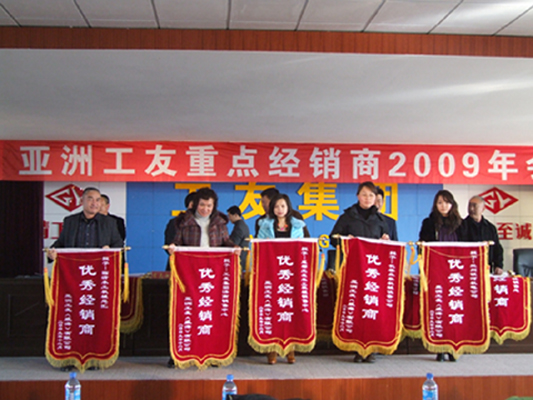 最后董事長董延偉做了題為《務(wù)實(shí)求新 和諧共贏 蓄勢待發(fā)》的報(bào)告。會(huì)上董事長首先對(duì)各位經(jīng)銷商的到來表示歡迎,一年來公司在廣大經(jīng)銷商的支持努力下,戰(zhàn)勝金融危機(jī),取得了可喜的經(jīng)濟(jì)效益。公司能夠戰(zhàn)勝前所未有的金融危機(jī),廣大經(jīng)銷商功不可沒,董事長對(duì)廣大經(jīng)銷商盡心盡力開拓市場表示感謝。他說,今天我們廠商歡聚一堂,就是要共商工友集團(tuán)發(fā)展大計(jì),探討如何在一個(gè)新的歷史起點(diǎn)上,團(tuán)結(jié)和動(dòng)員各位合作伙伴,發(fā)揚(yáng)務(wù)實(shí)求新的精神,不斷開拓進(jìn)取,合力開創(chuàng)工友各項(xiàng)事業(yè)的嶄新局面。董事長簡要的回顧了公司一年來工作所取得的成績。這一年里,公司緊扣市場的脈搏,進(jìn)行了企業(yè)內(nèi)部大調(diào)整,增強(qiáng)內(nèi)功。在企業(yè)管理、技術(shù)研發(fā)、降本降耗、改進(jìn)工藝提高產(chǎn)品品質(zhì)、鞏固并拓展?fàn)I銷網(wǎng)絡(luò)等方面下足了功夫,使公司在克服金融危機(jī)帶來不利影響的同時(shí)增強(qiáng)了實(shí)力。會(huì)上,董事長重點(diǎn)談了明年公司各項(xiàng)工作的規(guī)劃并對(duì)經(jīng)銷商提出了三項(xiàng)要求。他說:“我們廠商精誠團(tuán)結(jié)戰(zhàn)勝了金融危機(jī),國內(nèi)市場取得了不菲的成績。今后廣大經(jīng)銷商要隨時(shí)掌握市場的信息,不斷調(diào)整營銷策略,擴(kuò)大經(jīng)銷規(guī)模,把工友產(chǎn)品及時(shí)推向市場,為廣大用戶提供滿意的服務(wù),實(shí)現(xiàn)廠商共贏?!彼Mㄟ^經(jīng)銷商大會(huì)來表達(dá)公司最真摯的感激之情,從而回報(bào)與公司唇齒相依的經(jīng)銷商們,并熱切的希望創(chuàng)建一個(gè)友善、和諧的溝通交流平臺(tái),為工友集團(tuán)在未來的市場表現(xiàn)中更加出色,希望經(jīng)銷商廣泛提意見,公司會(huì)廣納善言,改善不足。