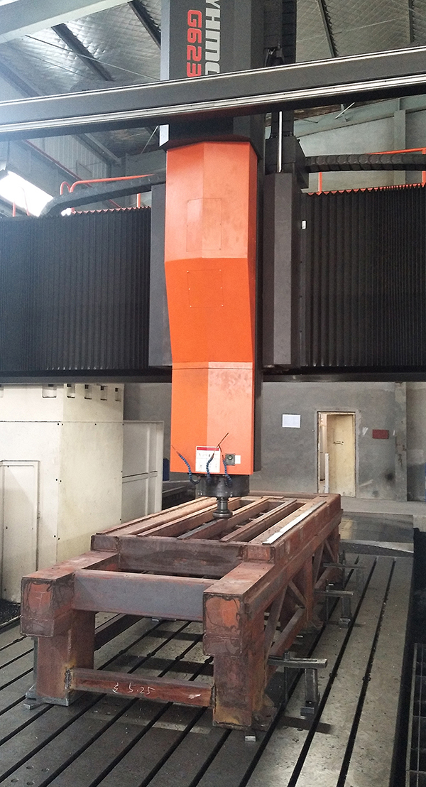 ◆橫梁采用厚壁10*200*300大方管,經(jīng)時(shí)效升溫580度自然降溫去應(yīng)力,采用五面加工中心一次成型加工,保證導(dǎo)軌面齒條面,立柱安裝面的形位公差,然后用側(cè)銑頭打孔攻絲一次合成,從而保證裝配精度。