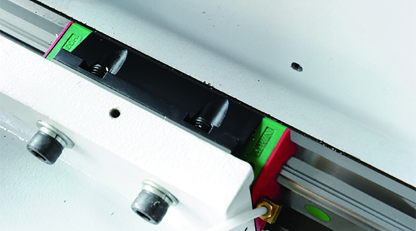 ◆Y軸采用四個(gè)臺(tái)灣上銀HGW35H加長重型滑塊,其他開料機(jī)廠家大多數(shù)使用30普通滑塊,更甚者使用25滑塊。