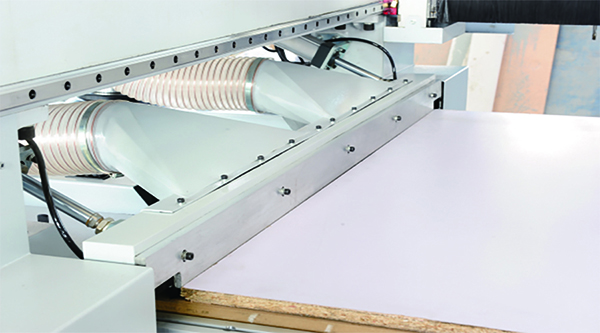 7.      推料裝置:簡捷高效,推料同時(shí)二次吸塵,確保臺(tái)面無粉塵;